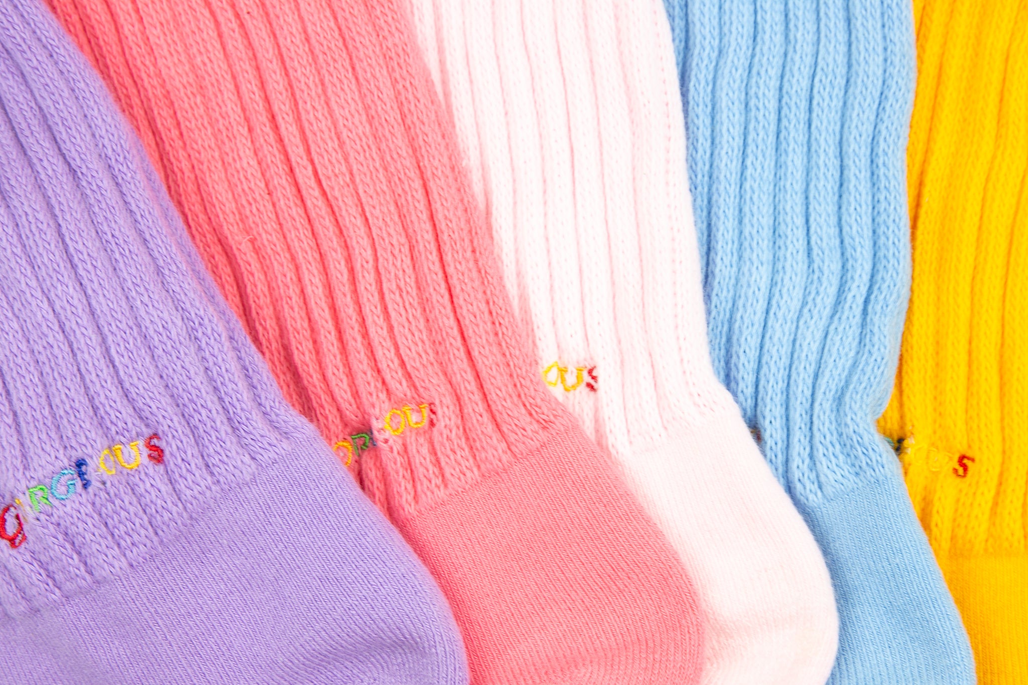 Finished with the embroidered GORGEOUS logo at the ankle and “Stay” and “Cozy” lettering on the left and right socks, these are a stylish reminder that comfort always comes first.