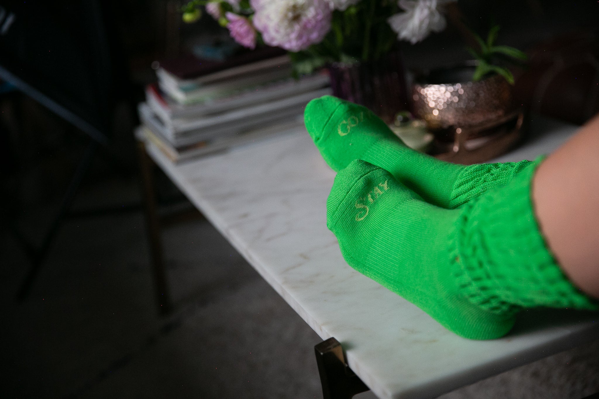 Finished with the embroidered GORGEOUS logo at the ankle and “Stay” and “Cozy” lettering on the left and right socks, these are a stylish reminder that comfort always comes first.